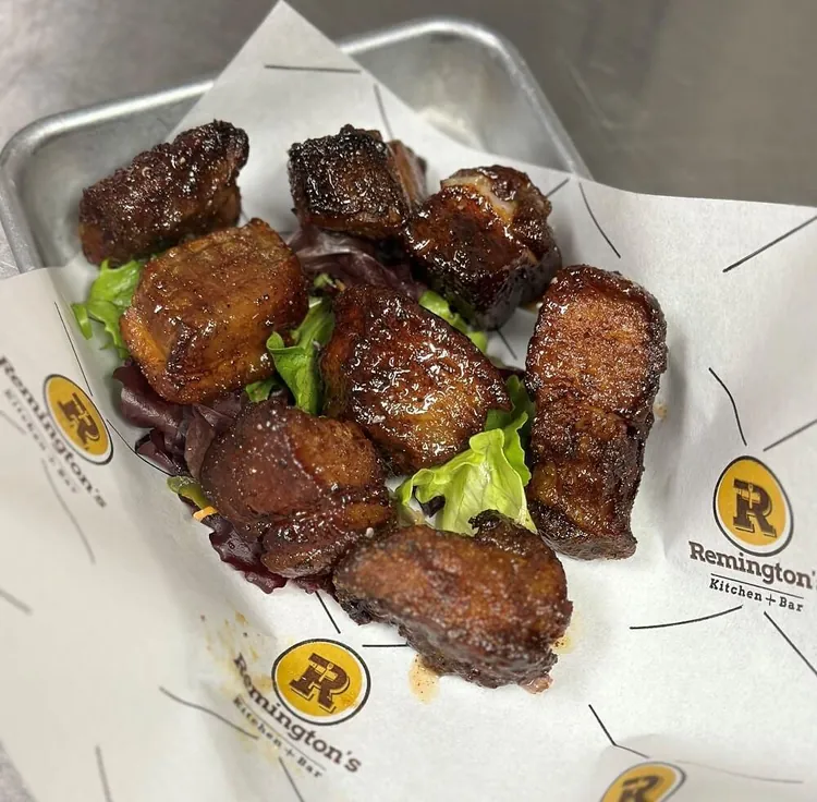 Sweet & Smoky Meat Candy.... 1/2 LB Of Our In-House Smoked Pork Belly Burnt Ends. Served With In-House Made Pickled Red Onions & Jalapenos Then Topped With Our Honey Lime Cilantro Sauce.