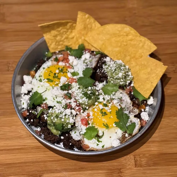 Spicy in house made Mexican Style chorizo, home fries, two Fried eggs , pico de gallo, cilantro, goat cheese & Fresh Avocado Slices.
