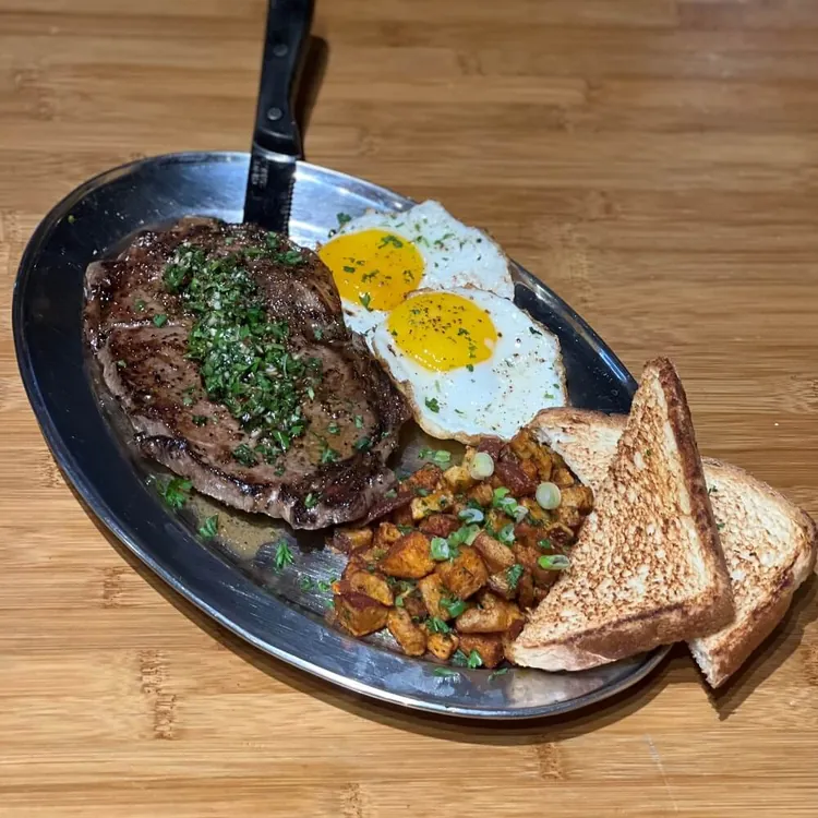 10oz Prime NY Strip steak, two eggs cooked to your preference, served with side of home fries, salsa verde & toast.