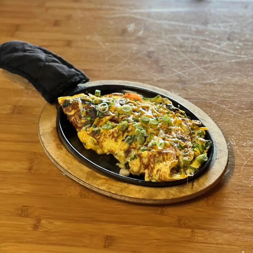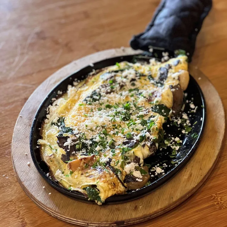 baby spinach, green peppers, onions, portabella mushrooms, tomatoes & monterey jack cheese. served with toast