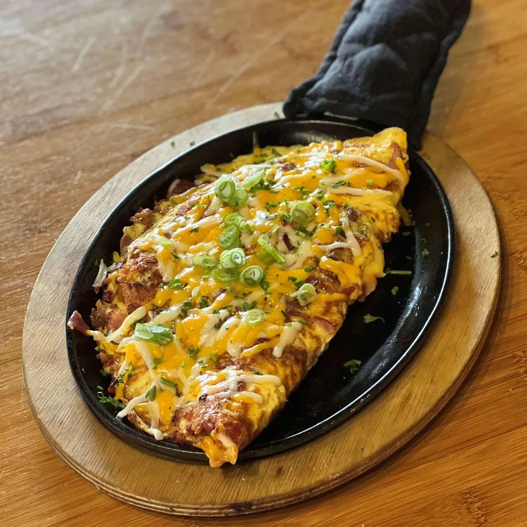 Bacon , sausage, ham & cheddar cheese, served with toast.