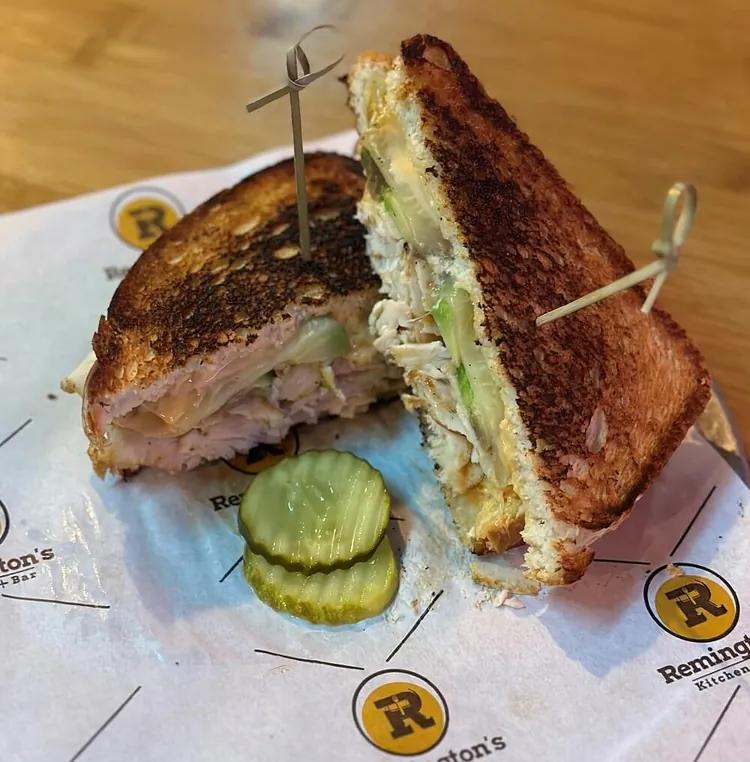 Not Your Grandads Club...Hand carved in-house roasted turkey breast, thick cut bacon, Cooper sharp white American cheese, shredded lettuce, tomatoes & mayo served on toasted country white bread.