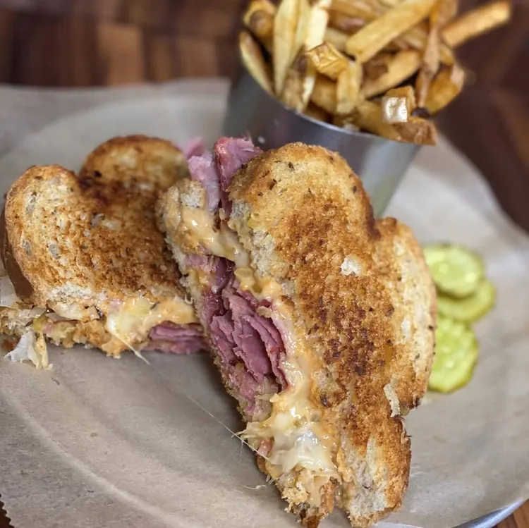 Your choice of thin sliced pastrami or oven roasted turkey breast. Served on grilled marble rye bread, then topped with Russian dressing, sauerkraut & Swiss Cheese.
