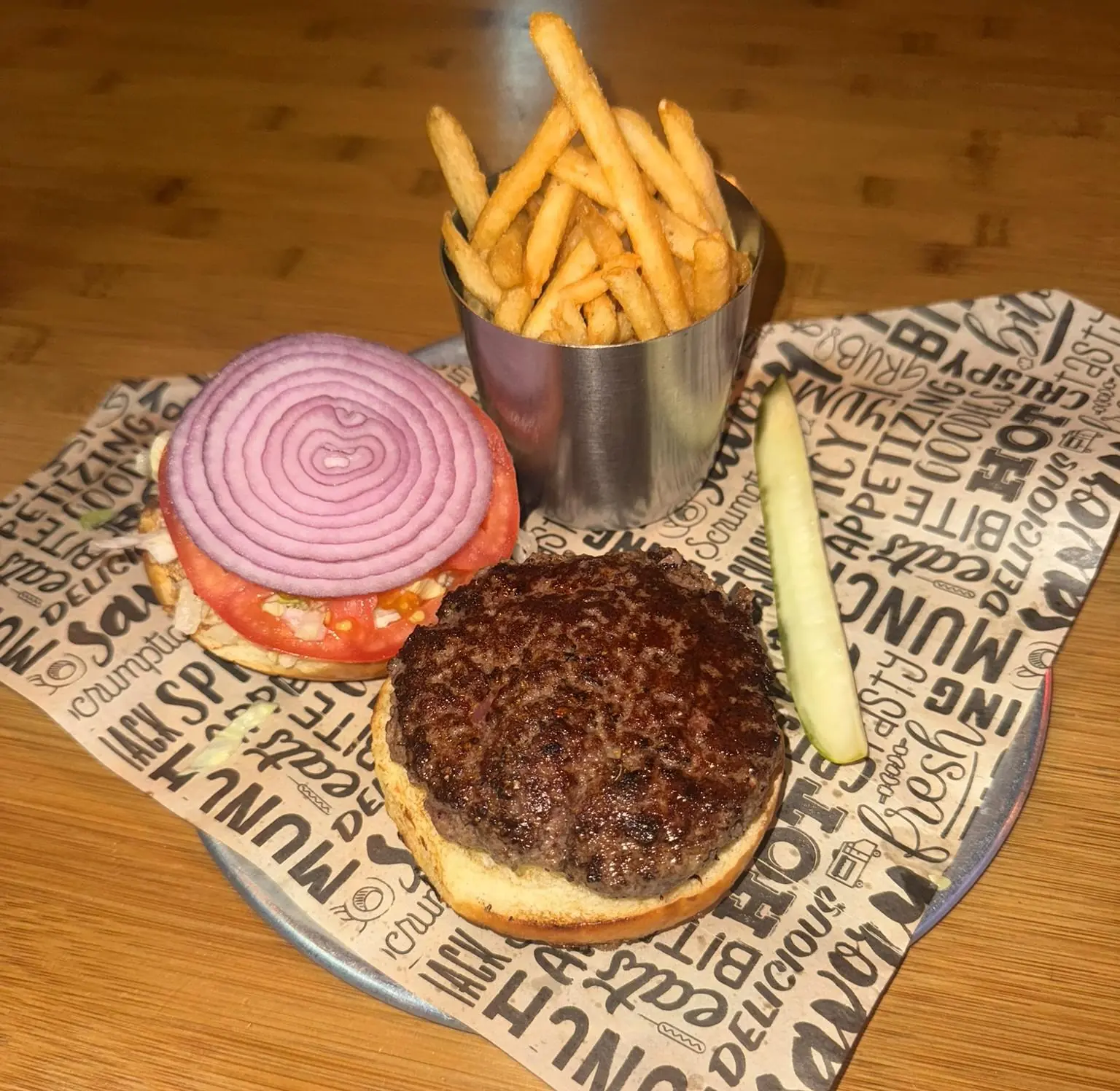 All of our burgers are ½ lb blend of brisket, chuck & short rib that we grind in house. Taste the quality & difference !!