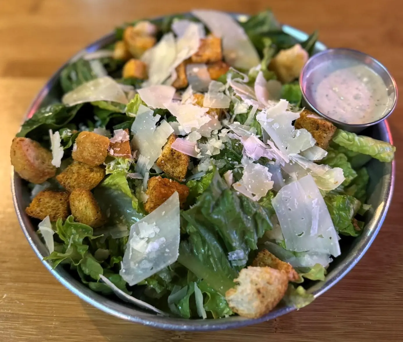 Fresh Crisp Romaine Lettuce, fresh Shaved Parmesan Cheese & Croutons . Served With In House Made Caesar Dressing.