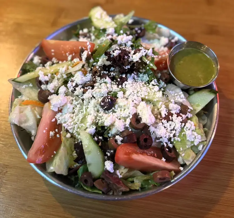 Blend of fresh spring greens, kalamata olives, feta cheese, cucumbers & tomatoes. Tossed in our basil vinaigrette dressing